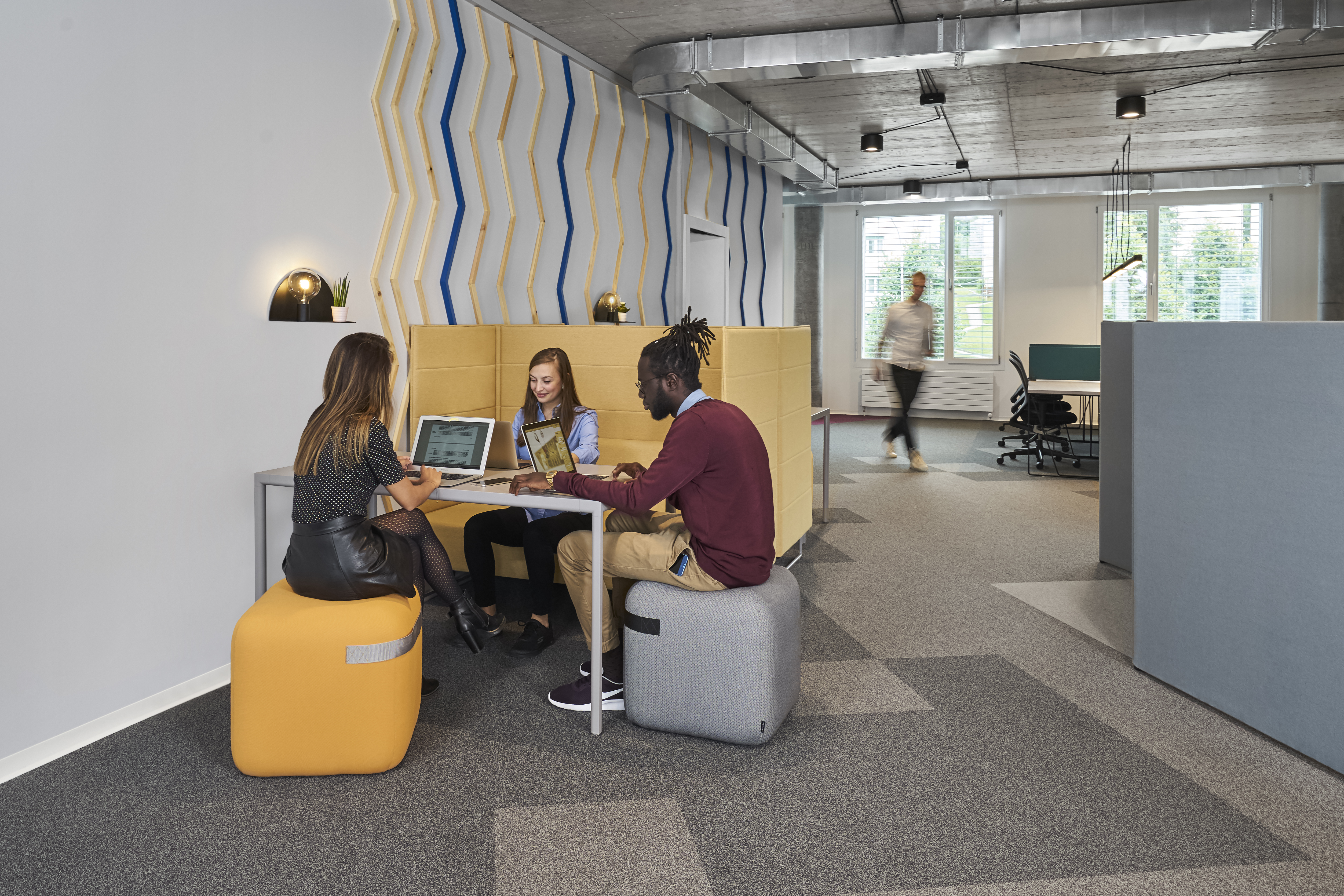Un espacio 100% digitalizado, todo se controla con tu móvil: accesos, reservas de puestos, de salas, actividades, etc. con espacios que ofrecen diferentes niveles de privacidad, orientado a los trabajadores de las principales empresas en Suiza que teletrabajan dos días por semana. El Co-Working pensado como herramienta para ofrecer mejores condiciones laborales, una comunidad diferente y facilitar el networking entre grandes empresas.