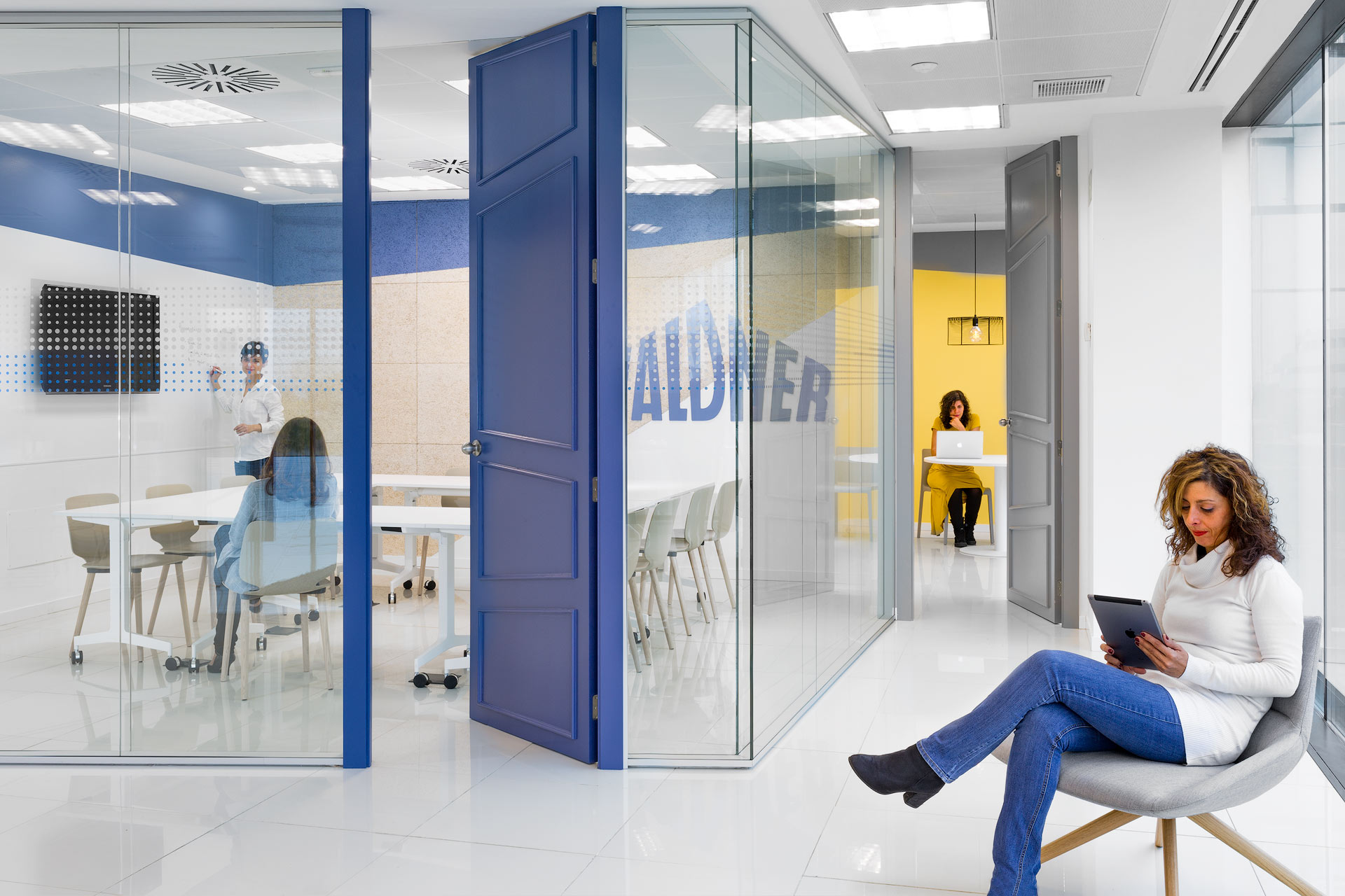La filial en España de una empresa Alemana. Este pequeño espacio de 200 m2 resuelve todas las necesidades de un equipo muy diverso entre los que hay directivos, técnicos de ventas y montaje. Además se ha convertido en el lugar por excelencia en donde impartir las formaciones todos los equipos de la empresa al disponer de una sala específica pensada para facilitar el aprendizaje de las personas.